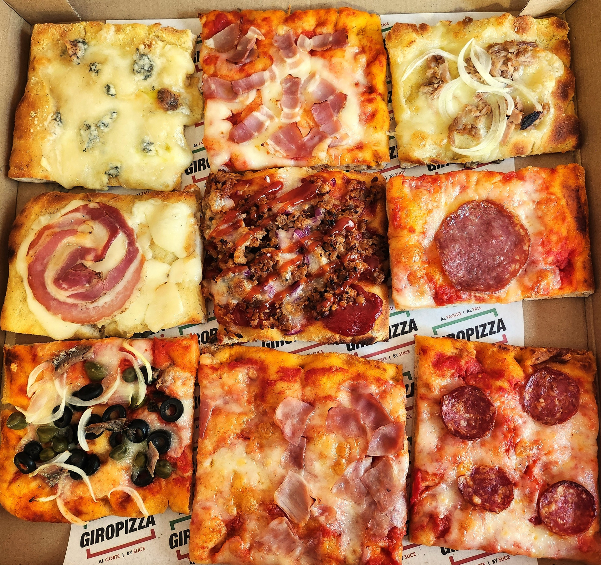 Gaudeix de la veritable pizza romana al tall a Giropizza, la pizzeria take away de referència a Girona, amb comandes en línia, recollida al local o lliurament a casa amb Glovo.