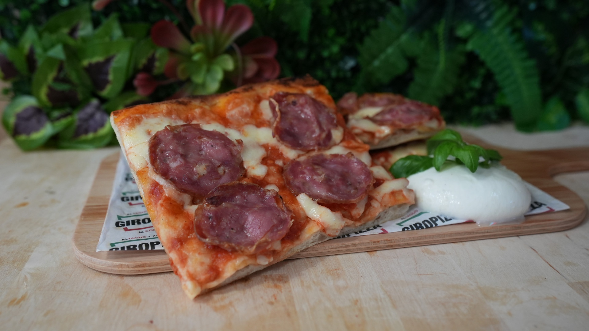 A diferència de la pizza napolitana, d’escorça gruixuda i textura tova, Giropizza es caracteritza per un inconfusible massa cruixent que la converteix en un producte distintiu i molt sol·licitat.